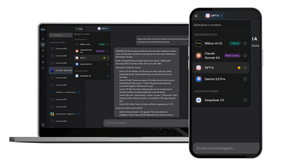 A Million IA é um sistema com agentes de IA que criam produtos digitais completos pra você, do zero, em minutos. Ela monta sua oferta, copy, páginas e estrutura de vendas com base no seu nicho e objetivo, mesmo se você for iniciante. Você escolhe o que quer e a IA executa cada etapa automaticamente, 24/7. O resultado é um funil pronto pra vender no digital com menos esforço e mais velocidade.